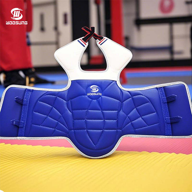 Pelindung Dada Taekwondo Otot pemasok WOOSUNG® menggabungkan desain ergonomis dengan teknologi pelindung berspesifikasi tinggi. Dibuat dengan bahan lembut, elastis, dan tahan aus yang dipilih dengan cermat, serta memiliki bahan yang sangat menyerap keringat, produk ini menjaga tubuh tetap kering bahkan selama latihan intensitas tinggi dalam jangka waktu lama, memberikan perlindungan batang tubuh yang komprehensif bagi penggemar Taekwondo dan atlet profesional, menyeimbangkan perlindungan terbaik dengan kebebasan bergerak.
