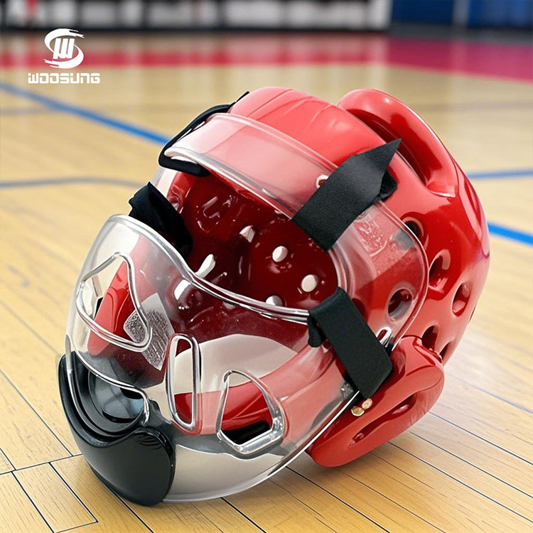 Pelindung Kepala Taekwondo Tiongkok dengan Pelindung Wajah menggabungkan perlindungan kepala canggih dengan pelindung wajah bawaan untuk keamanan menyeluruh selama latihan intensif dan sesi perdebatan. WOOSUNG Didesain untuk kenyamanan dan daya tahan, memberikan perlindungan tak tertandingi sekaligus menjaga visibilitas dan mobilitas bagi praktisi Taekwondo.
