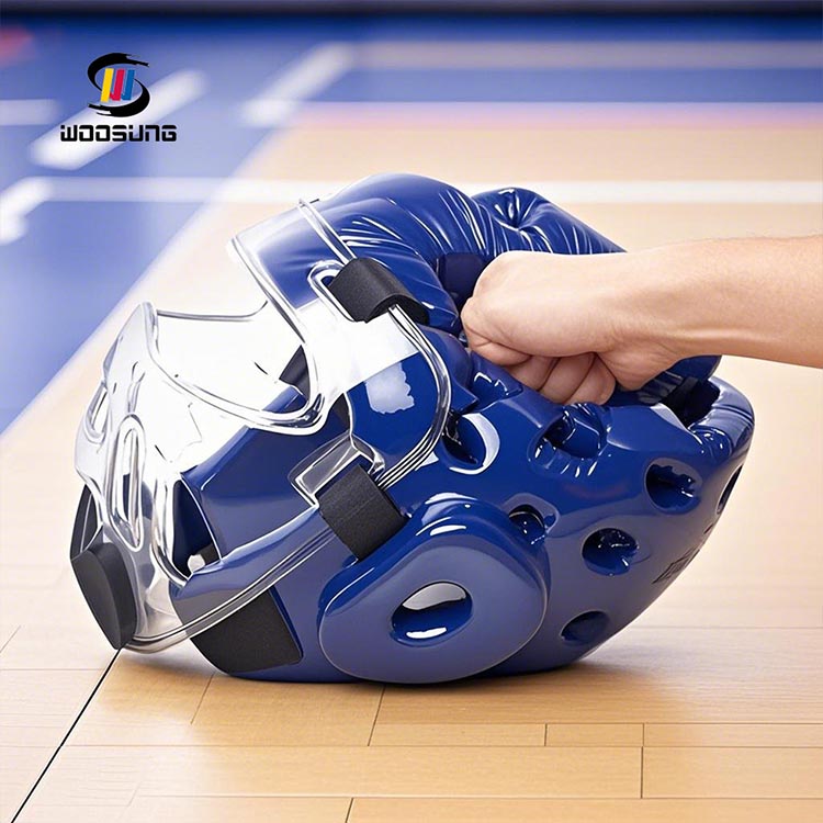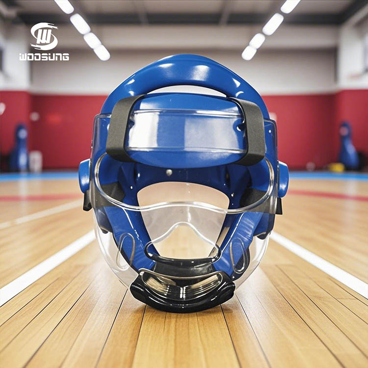 Pelindung Kepala Taekwondo dengan teknologi penguatan Masker memastikan daya tahan dan perlindungan yang andal selama penggunaan jangka panjang. Perlindungan komprehensif untuk atlet