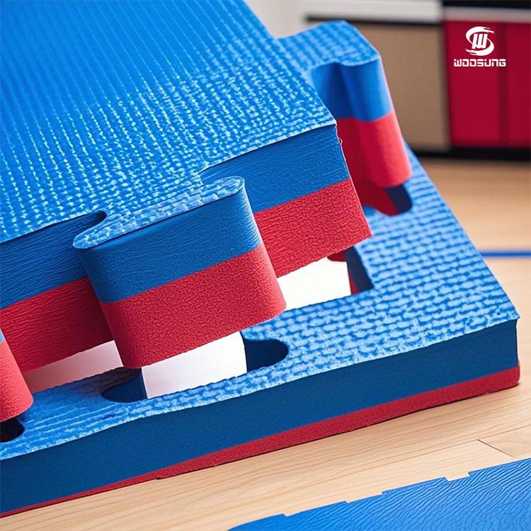 WOOSUNG®Tikar Tatami Taekwondo terbuat dari busa kepadatan tinggi pilihan untuk memastikan daya tahan, bantalan, dan elastisitasnya yang sangat baik. Desain struktur sel tertutup yang unik tidak hanya memastikan kinerja matras stabil dalam penggunaan jangka panjang, namun juga memiliki fungsi kedap air dan antibakteri, sehingga sangat cocok untuk digunakan di tempat pelatihan umum. Matras memiliki permukaan yang halus dan cengkeraman yang kuat, memberikan dukungan yang stabil untuk gerakan intensitas tinggi seperti menendang dan melompat, sehingga sangat mengurangi risiko tergelincir.